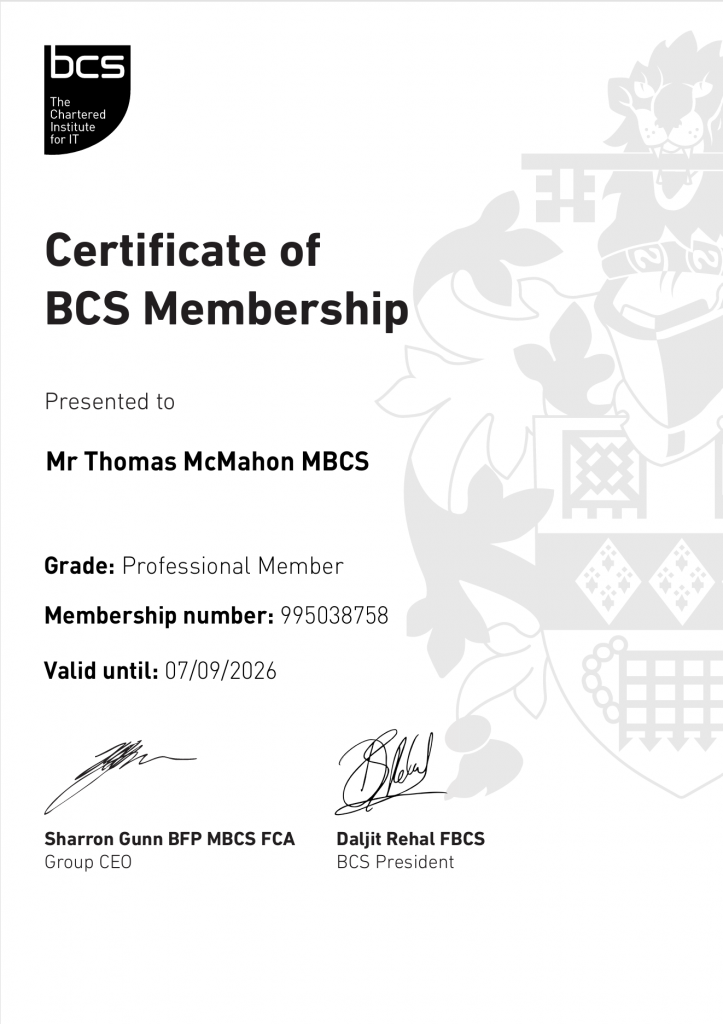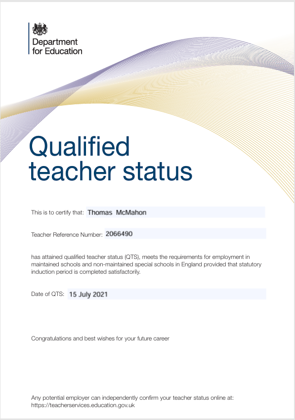 In 2017 I completed a Bachelor of Laws with First Class Honours, followed by an MSc in Computing (Software Engineering) in 2019. I enrolled on a PGCE at the Institute of Education, UCL and obtained my Qualified Teacher Status in 2021, and passed Early Career Teacher induction in 2023, since then I have taught and tutored Computer Science.